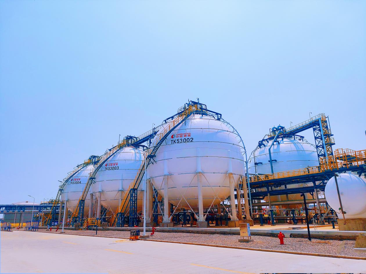 该项目中,宏图公司承建1台3000m³丁烷球罐和3台3000m³丙烷球罐建设任务。作为与中国天辰工程有限公司在球罐群项目的首次合作,宏图公司高度重视,组建了专业的项目团队,严格遵循中国天辰工程有限公司的质量标准和管理要求,从设计、选材到施工的每一个环节都精益求精。安装过程中,项目团队克服了施工周期紧张、技术难度大等困难,项目所有工程均达到业主方要求,以高标准、高质量完成了球罐建设任务,确保了项目的顺利交付。